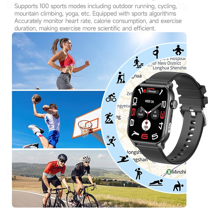 696 KR86 Smart Watch 1.95 inch Smart Band Fitness Bracelet Bluetooth Pedometer Call Reminder Heart Rate Monitor Compatible with Android iOS Women Men Hands-Free Calls Message Reminder IPX-0 37.5mm 21