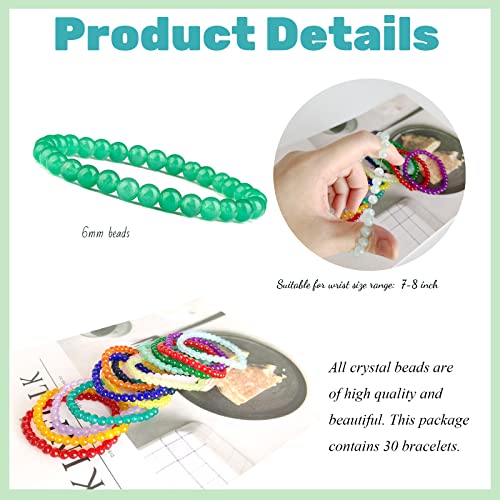 30 PCS 6mm Crystal Round Beaded Bracelet Set Healing Glass Stretch Bracelets for Women Men Round Beads Elastic Bracelets 5
