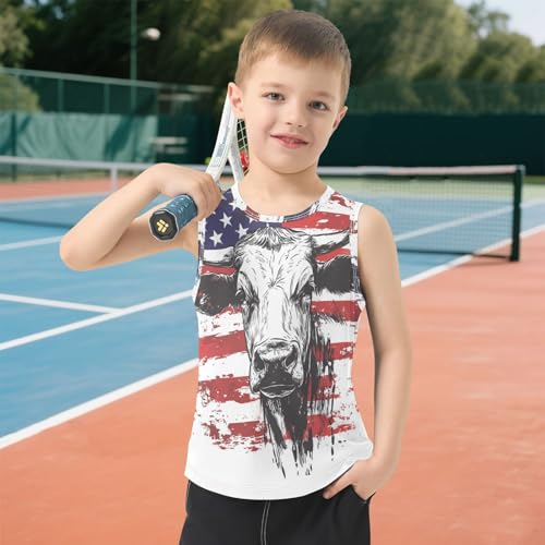 Boys Tank Top Shirts American Flag and Cow Animal Sleeveless T-Shirts Crew Neck for Kids Clothing Children 5