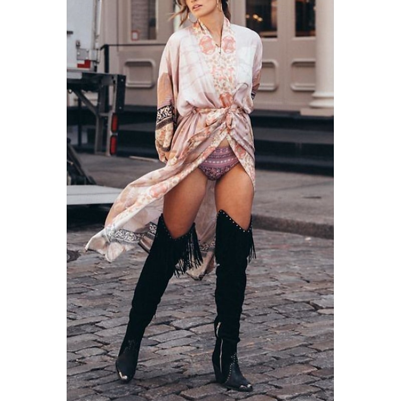 More information about Women's Swimwear Cover Up Swimsuit Tie Front Tropical Beach Wear Flower V Wire Long Sleeve Bathing Suits