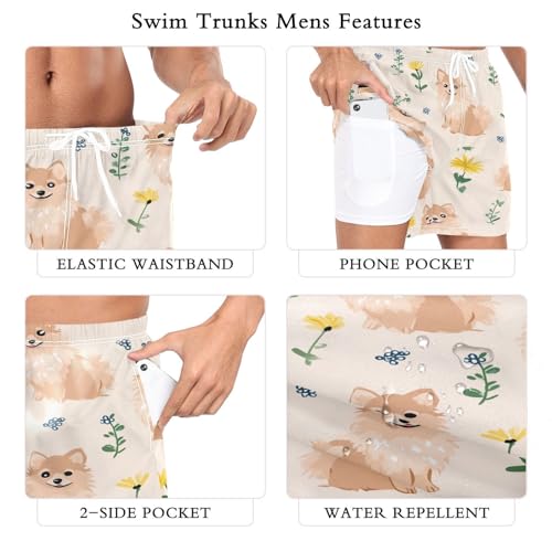 Pomeranian Flower Men's Swim Trunks with Liner Quick Dry Beach Shorts Swimwear Bathing Suit S-XXL 4