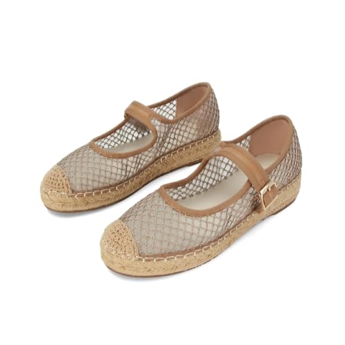 SOVANYOU Mary Jane Espadrilles for Women Round Toe Mary Jane Flats Platform Woven Outsole Ballet Flat with Buckle 1