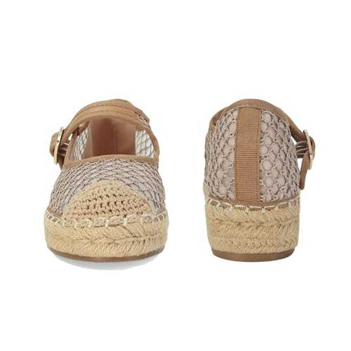 SOVANYOU Mary Jane Espadrilles for Women Round Toe Mary Jane Flats Platform Woven Outsole Ballet Flat with Buckle 6