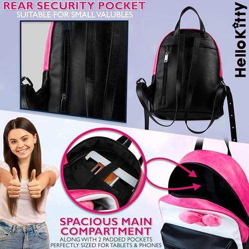 Hello Kitty Sanrio Backpack for Teens, Women, Kawaii Faux Leather Daypack, Rucksack, Kuromi, My Melody, Gifts for Women (Pink/Black Hello Kitty) 2