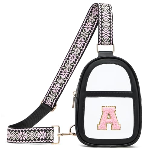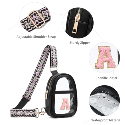 HOT ! Clear Crossbody Bag for Stadium Events, Concerts, Sports Festivals | Women's Purse With Chenille Initial A Patch, Black