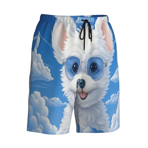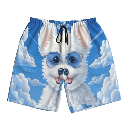 HOT ! Puppy with Glasses in The Sky Men Beach Pants – Swim Trunks for Men,Quick-Dry and Comfortable, Suitable for Beach, Surf, and Everyday Wear Black