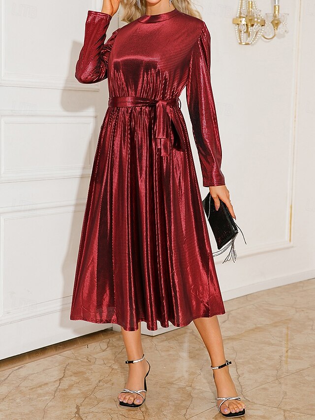 HOT ! Women's Maxi Dress Sequin Dress Vintage Dress Formal Dress Elegant Dress Elegant Vintage Streetwear Wedding Party Evening Party Regular Fit Solid Color Stand Collar Silver Red Spring Fall