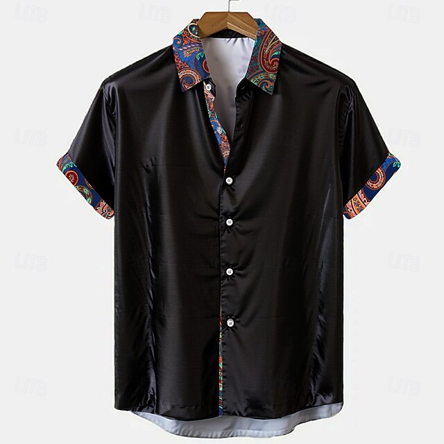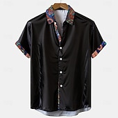 Men's Floral Button Up Shirt Short Sleeve Fashion Casual Party Casual Summer Spring Turndown Button Up Black Blue 7