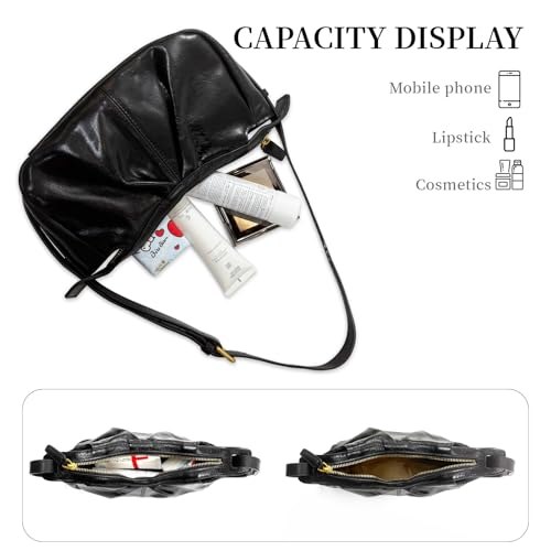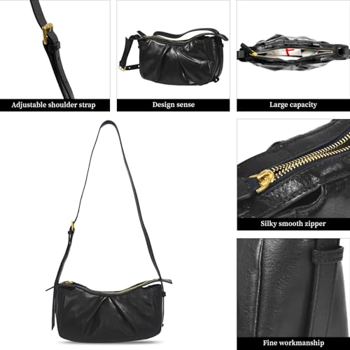 More information about Leather Shoulder Bags Women Genuine Leather Handbags satchel bags Crossbody Bag for Women Black Pleated Leather Shoulder Bag