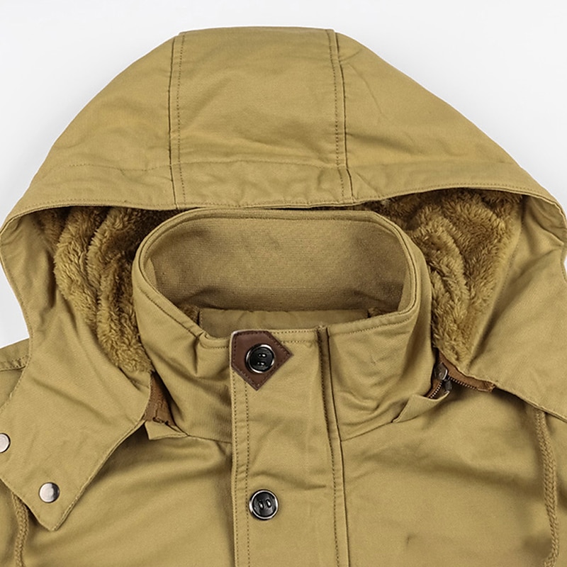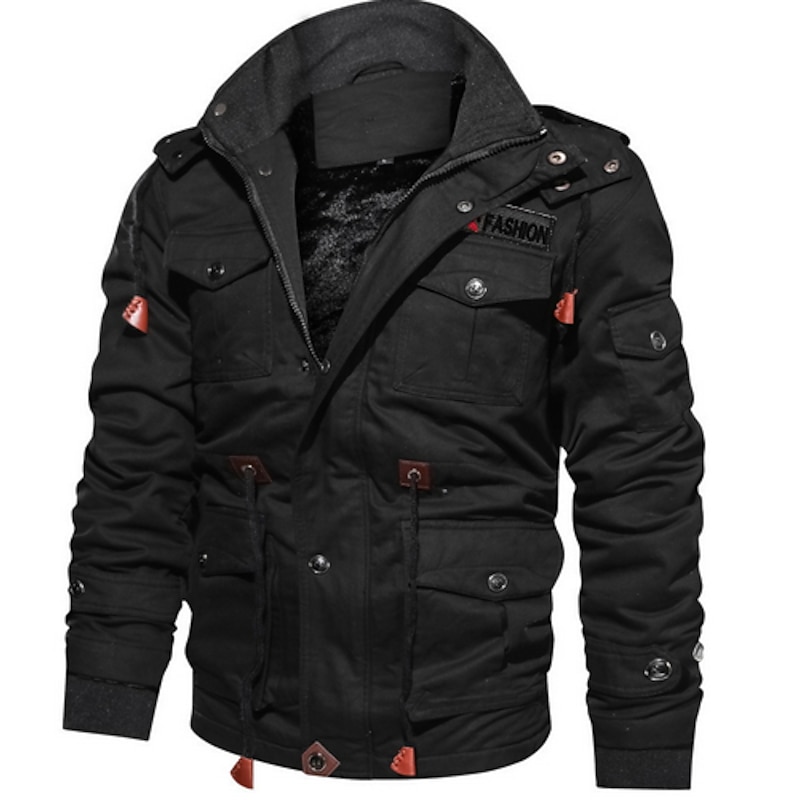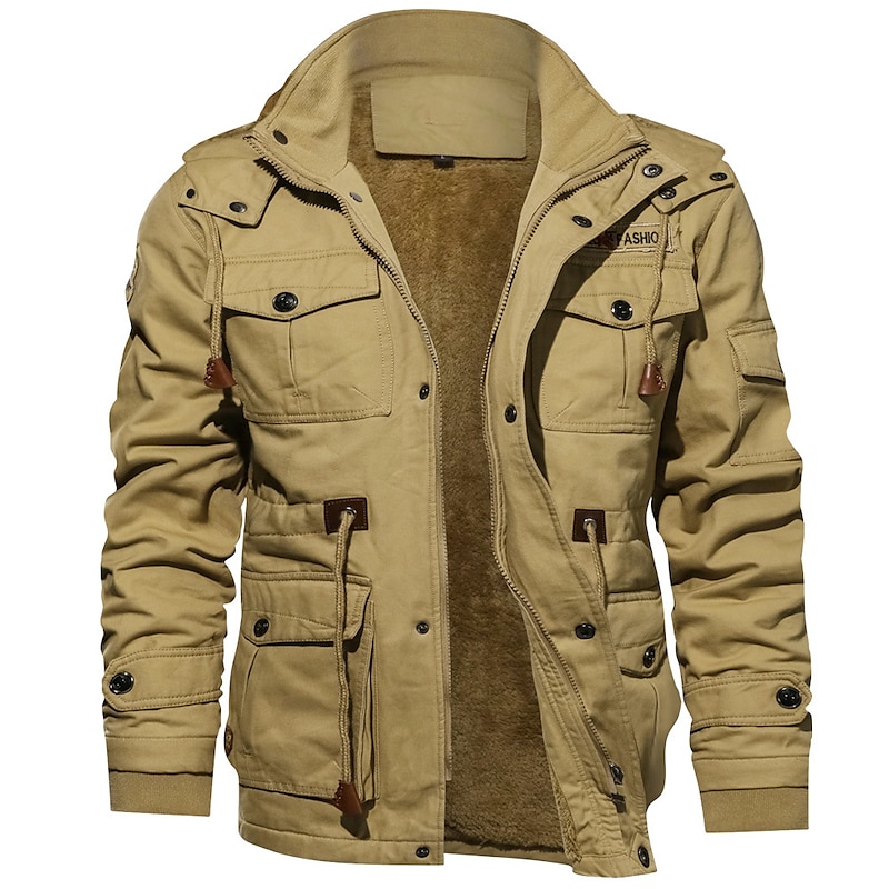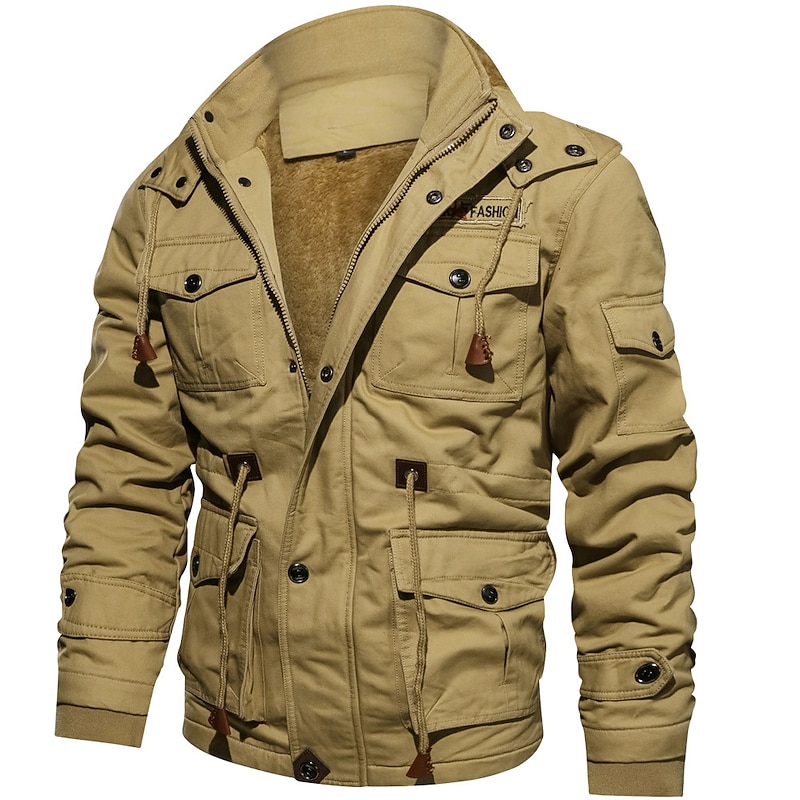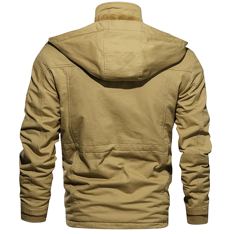 More information about Men's Winter Jacket Winter Coat Work Jacket Outdoor Street Windproof Warm Drawstring Winter Solid Colored Fashion Keep Warm Stand Collar Regular Cotton Fleece Black Army Green Khaki Jacket
