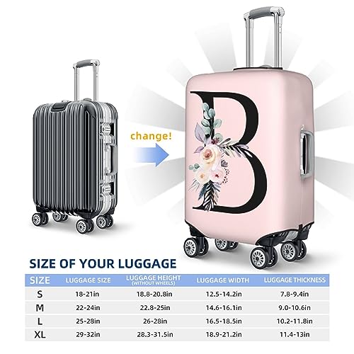 HOT ! Spandex Travel Luggage Cover Cute Pink Suitcase Protector Bag,Black Letter B With Boho Floral Flowers Leaves Anti-Scratch,Dust-Proof Washable Suitcase Sleeve For Kid Adult,L (For 25-28 Inch Luggage)