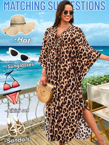 Print Moo-Moos for Women, Kaftan Cover-Up Dresses, Sexy V-Neck High-Slit, Beach Pool-Party Coverups Muumuu Plus 4