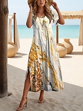 More information about Women's Maxi Dress T Shirt Dress Tee Dress Sundress Shift Dress Summer Dress Elegant Beach Party Holiday Beach Regular Fit Abstract Marble Short Sleeve Crew Neck Gold Summer Spring