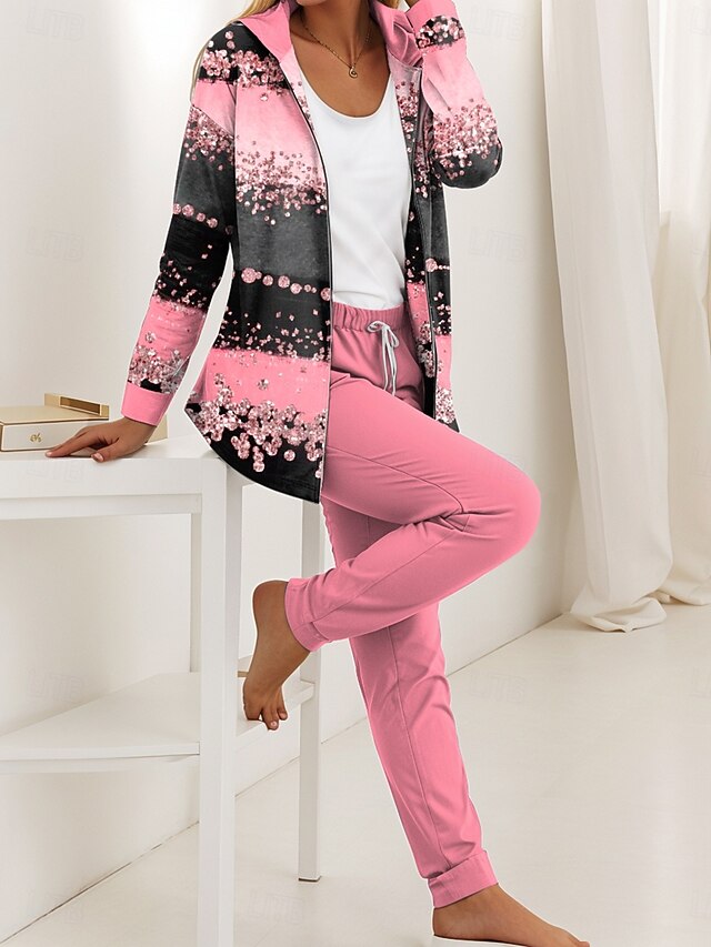 More information about Women's 2 Pieces Hoodie Tracksuits Long Sleeve Daily Hooded Ombre Graphic Striped Zipper Print Casual Pink Blue Purple Fall Regular Fit