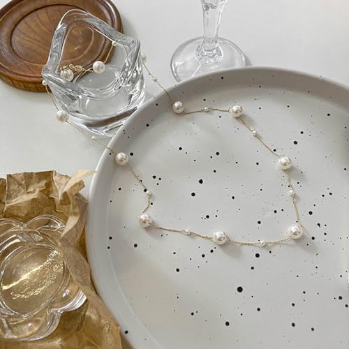 HOT ! Boho Pearl Y Shape Necklaces for Women, Dainty 14k Gold Plated Pearl Beaded Chain Choker Necklace Trendy Jewelry Accessories Gift