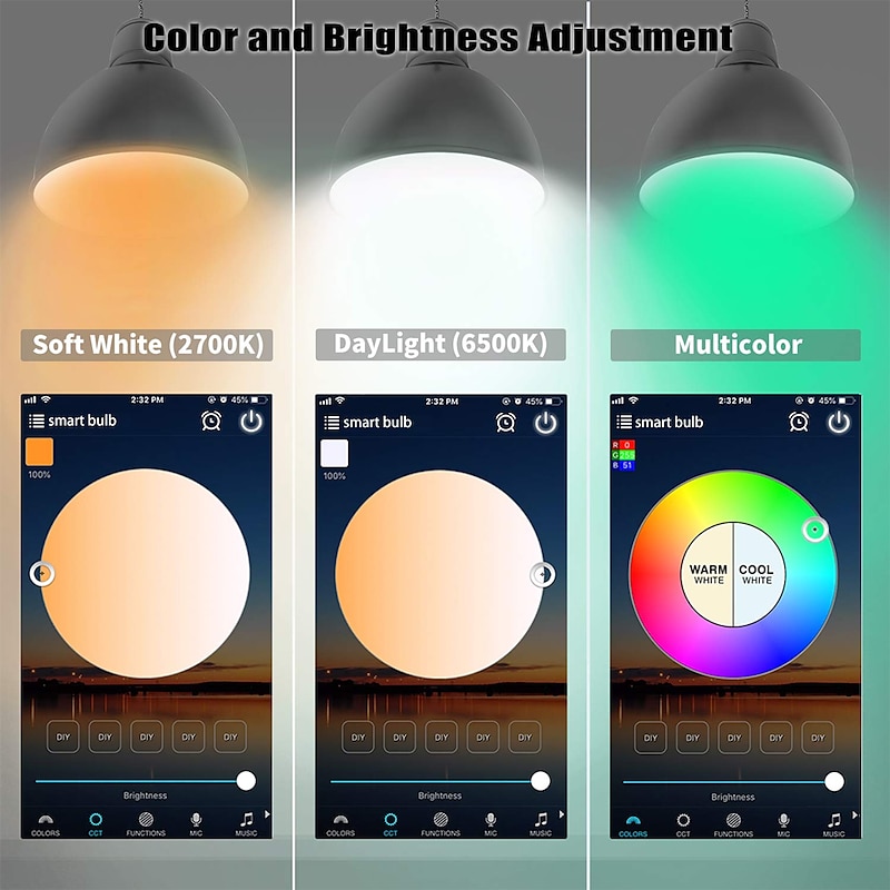 6pcs 4pcs 2pcs10W WiFi Smart LED Light Bulb Work with Alexa & Google Dimmable A19 A60 E26 E27 RGBCCT Color Changing No Hub Required 11