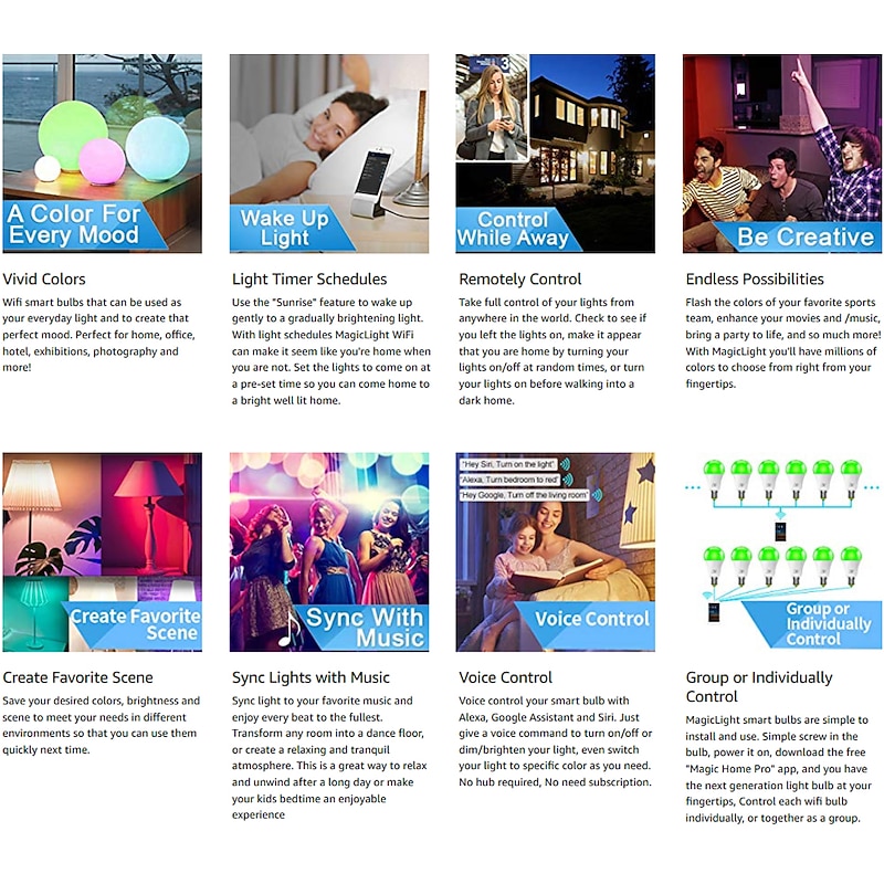 6pcs 4pcs 2pcs10W WiFi Smart LED Light Bulb Work with Alexa & Google Dimmable A19 A60 E26 E27 RGBCCT Color Changing No Hub Required 17