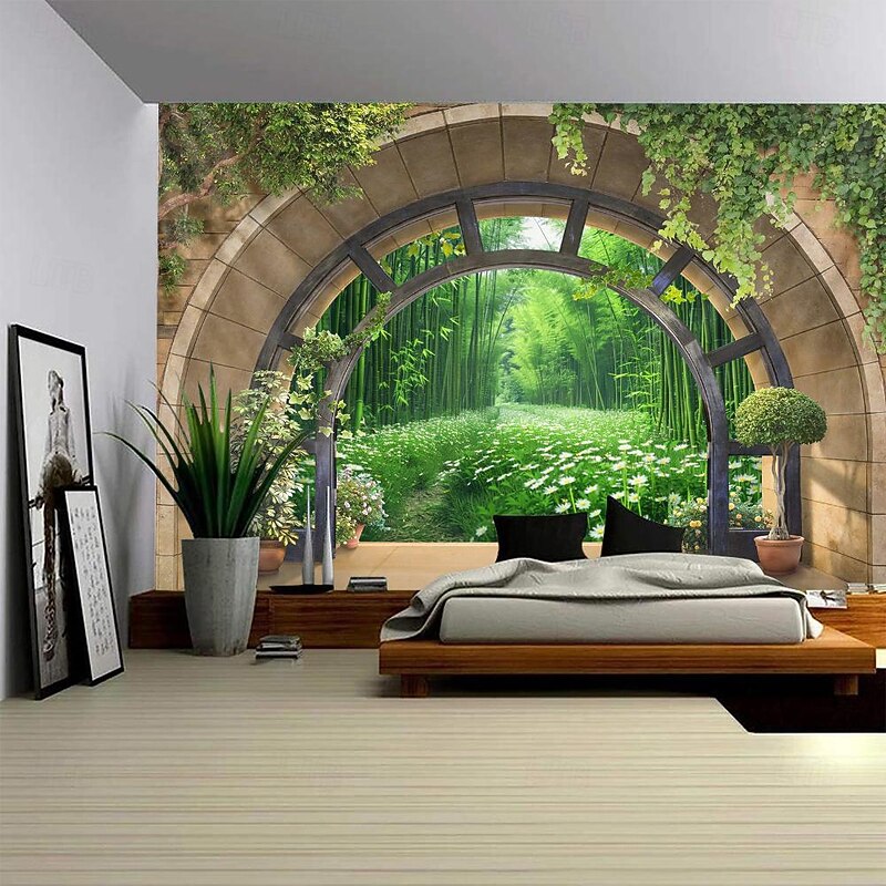 HOT ! Forest outside Cave Hanging Tapestry Wall Art Large Tapestry Mural Decor Photograph Backdrop Blanket Curtain Home Bedroom Living Room Decoration