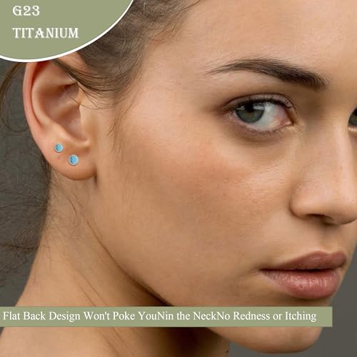ZDE Titanium Flatback Earrings for Women Turquoise/Black Oxy/Malachite Stud Earrings Flat Back Ladies Earstuds Hypoallergenic Cartilage Flatback Earring 4MM/5MM 5