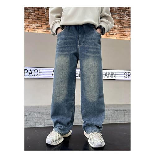 More information about Boys Fleece Lined Jeans Kids Vintage Elastic Waist Denim Pants Y2K Streetwear with Pockets Fall Winter 4-12 Years