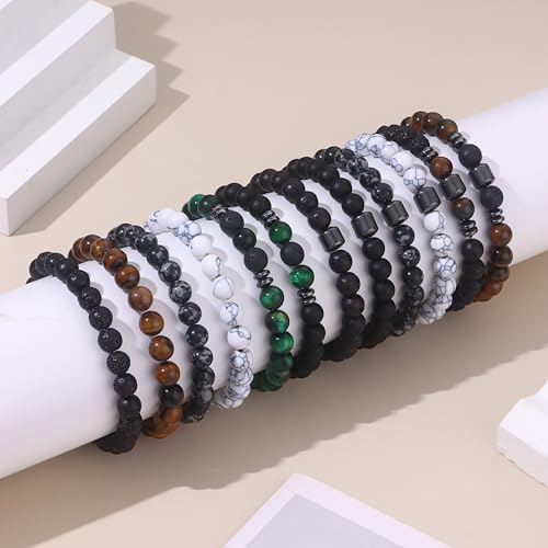 • Mens Bracelets Beads:You will receive 12 styles mens beaded bracelets.Made of high-quality natural stones like tiger eye,black onyx,howlite,lava rock,blue tiger eye and so on,these accessories are designed delicately and beautifully.Beaded bracelets are a classic men's bracelet that can be worn with any outfit