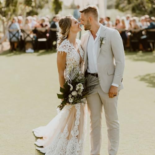 More information about Men's 3 Piece Linen Suit Set Slim Fit Casual Lightweight Blazer Jacket Vest Pants Tuxedo Set for Party Wedding