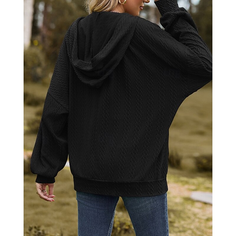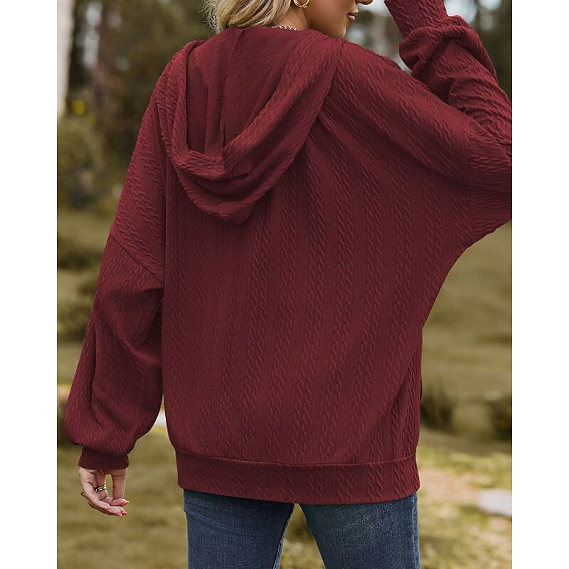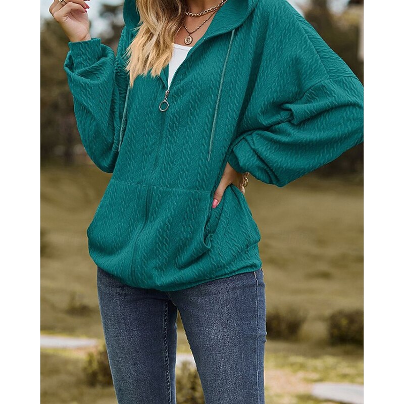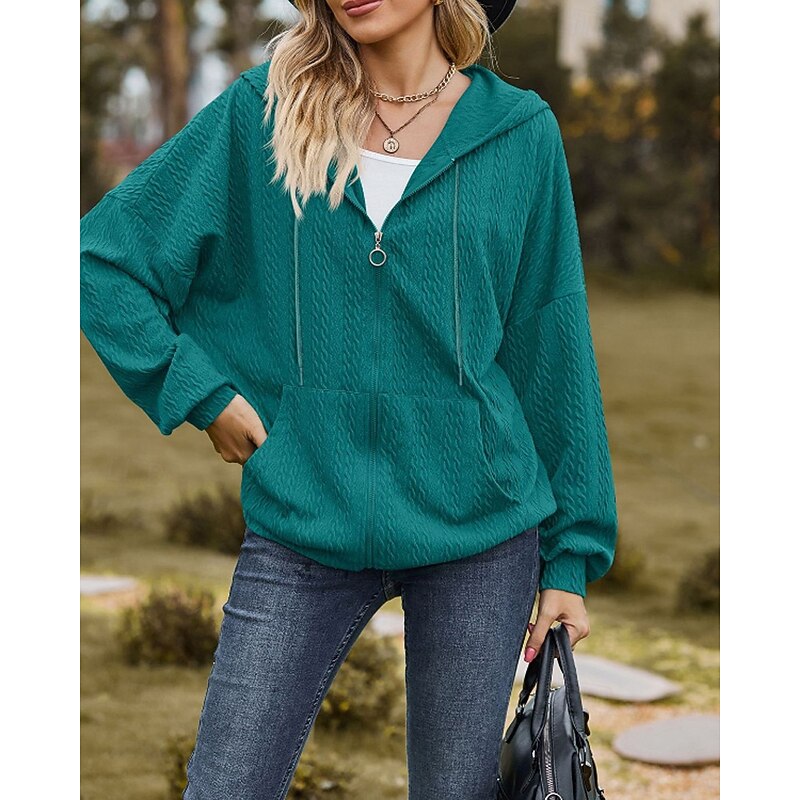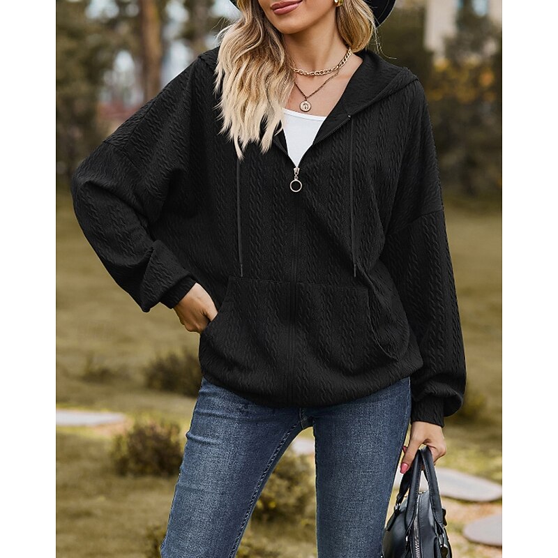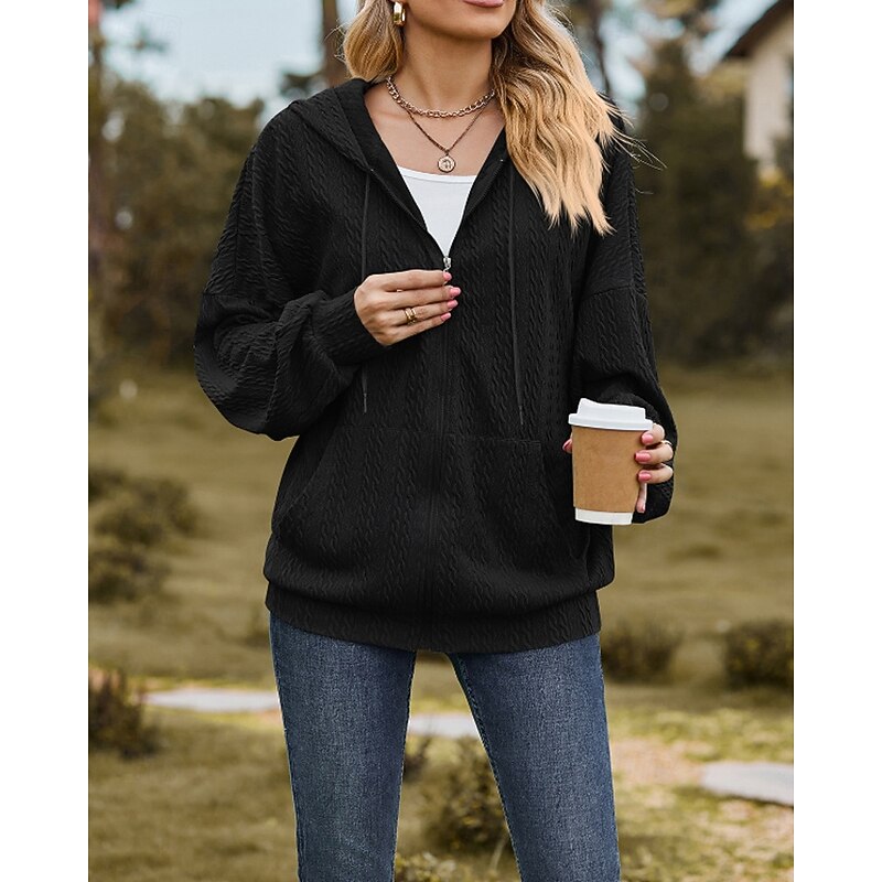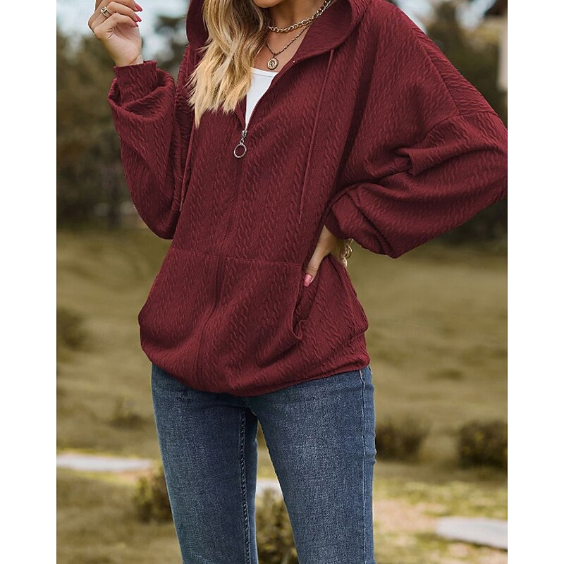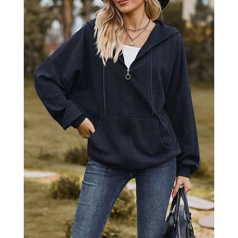 More information about Women's Texture Sweatshirt Zip Up Hoodies Plain Streetwear Casual Long Sleeve Hooded Regular Tops Street Holiday Going out Zipper Pocket Light Pink Black Wine Navy Blue Blue Fall Winter