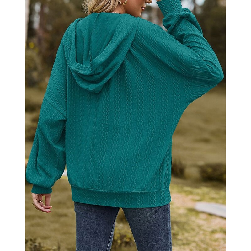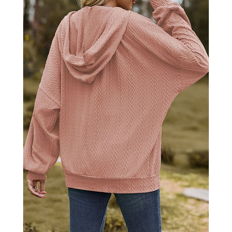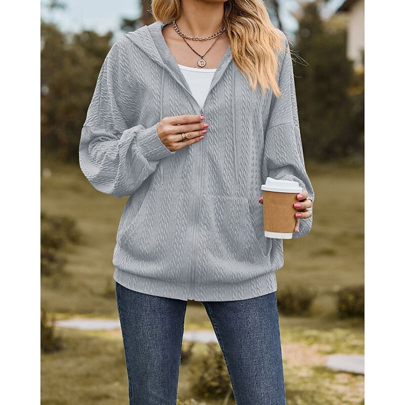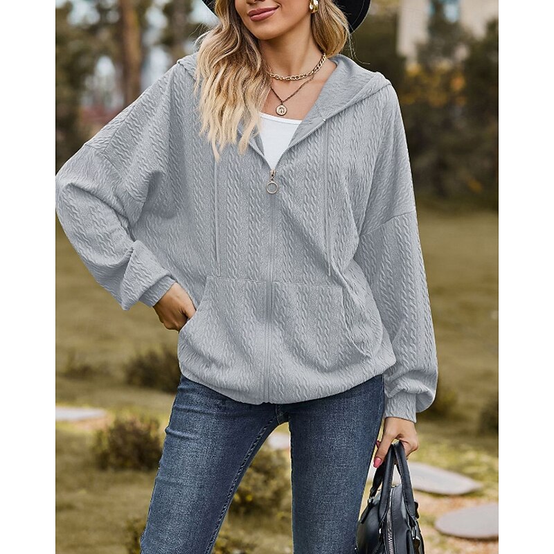 Women's Texture Sweatshirt Zip Up Hoodies Plain Streetwear Casual Long Sleeve Hooded Regular Tops Street Holiday Going out Zipper Pocket Light Pink Black Wine Navy Blue Blue Fall Winter 25