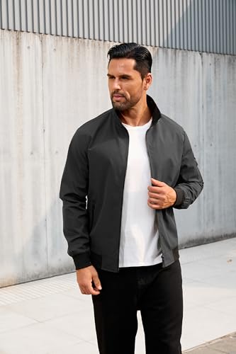 QTE Jacket for Men Fashion Windproof Bomber Jackets Coat Lightweight Casual Spring Fall Windbreaker Zip Up with Pocket 7