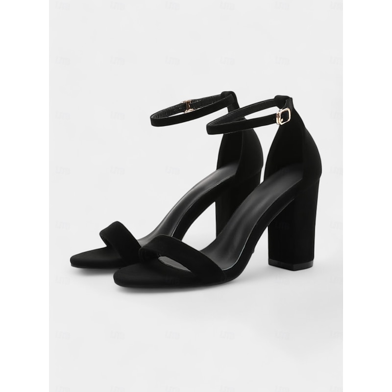 Highlights - Luxurious suede upper for a sophisticated look - Synthetic leather lining for added comfort - Sturdy block heel for stability and style - Elegant open toe design - Durable rubber outsole for long-lasting wear
