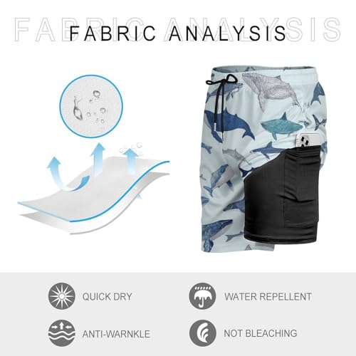 HOT ! Watercolor Whales Dolphins and Shark Mens Swim Trunks Quick Dry Beach Shorts with Compression Liner and Pocket