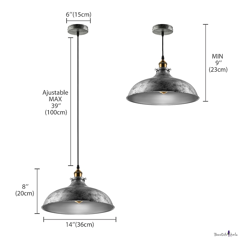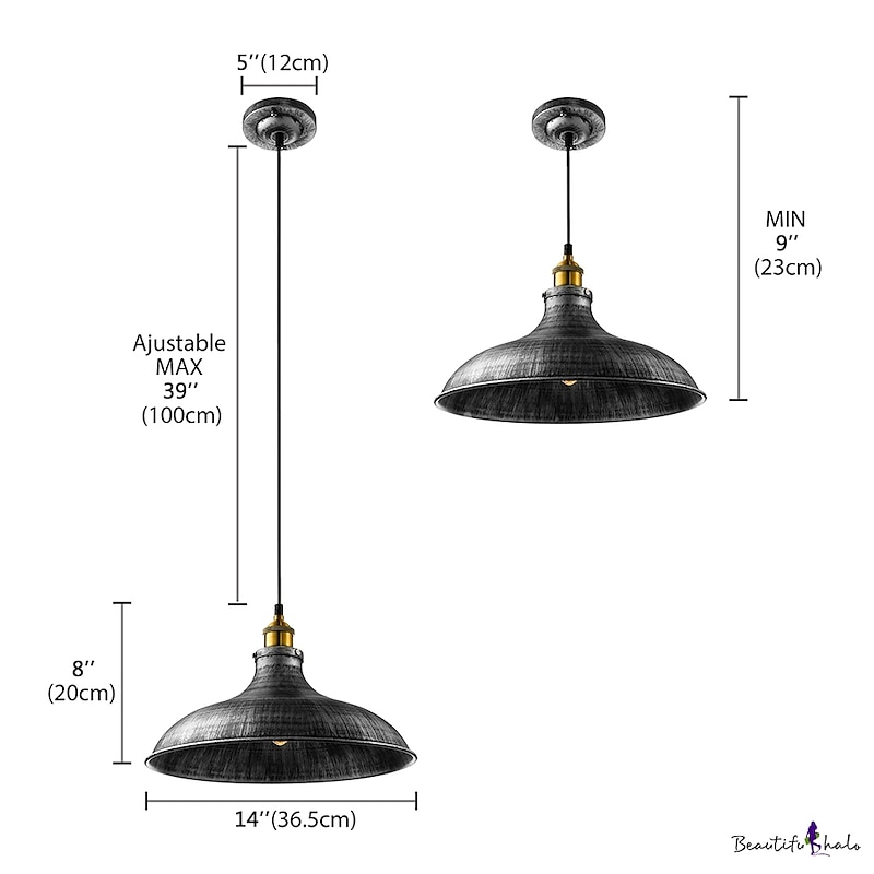 LED Pendant Light Hanging Ceiling Industrial Brushed Vintage Lampshade Bar Lighting ,Restaurant Lighting Antique Brushed Rustic Style Metal 14