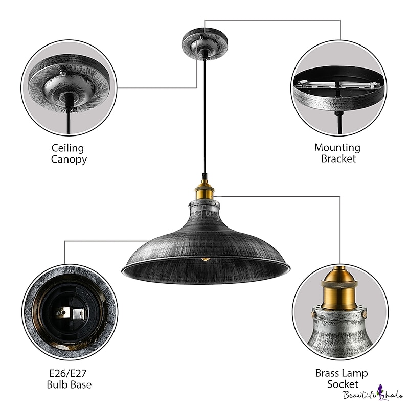 LED Pendant Light Hanging Ceiling Industrial Brushed Vintage Lampshade Bar Lighting ,Restaurant Lighting Antique Brushed Rustic Style Metal 11