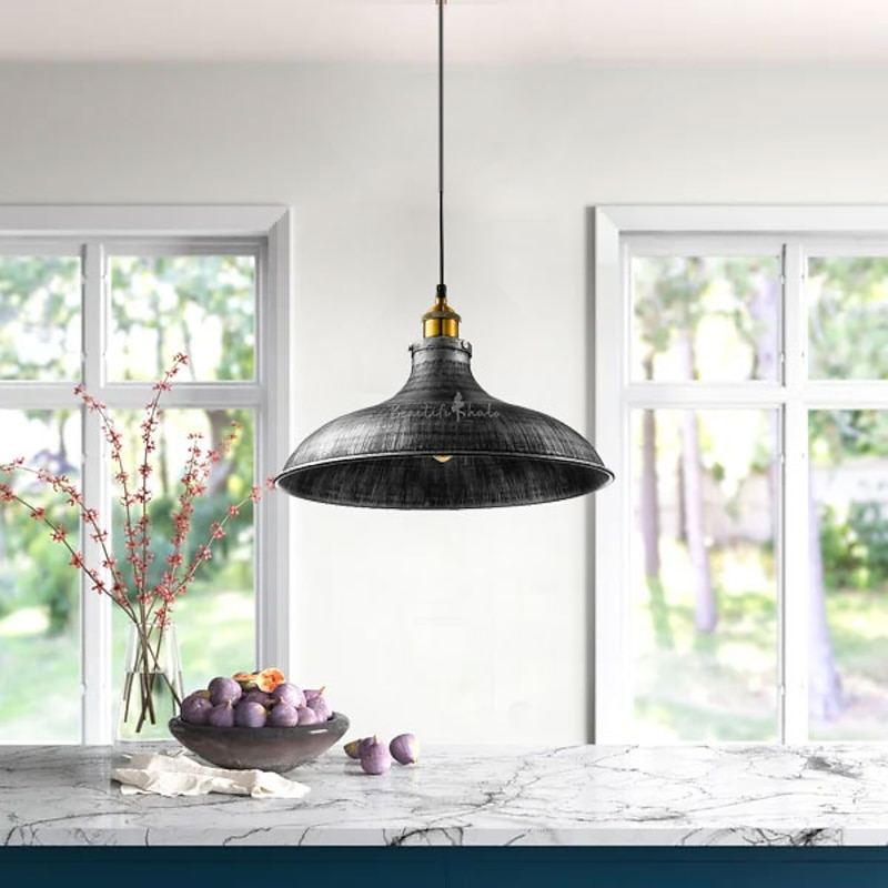 LED Pendant Light Hanging Ceiling Industrial Brushed Vintage Lampshade Bar Lighting ,Restaurant Lighting Antique Brushed Rustic Style Metal 13