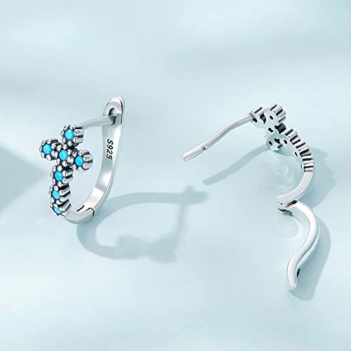 Turquoise Cross 925 Sterling Silver Tiny Small Hoop Earrings for Women Teen Girls Cartilage Hypoallergenic Small Huggie Hinged Hoops Sleeper Piercing Ear Cuffs Religious Faith Protection Earring 3