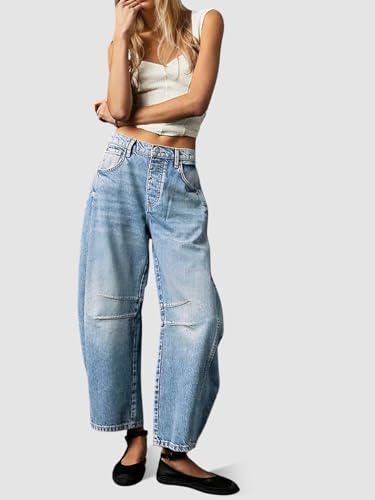 More information about Sexyasasii Barrel Jeans Women Wide Leg Mid-Rise Denim Ankle Pants Y2k Baggy Boyfriend Jeans with Pockets