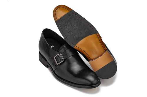 More information about CALTO Men's Invisible Height Increasing Elevator Shoes - Black Leather Slip-on Monk-Strap Dress Loafers - 2.8 Inches Taller - Y7254 - Size 10 D(M) US