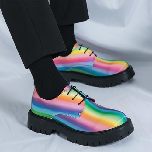 Men's Rainbow Lace Up Lug Sole Platform Oxfords Classic Round Toe Comfort Chunky Heel Anti-Slip Derby Casual Shoes for Business Work Office Dress Shoes 6