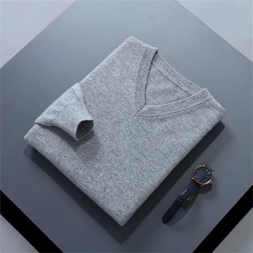 Men's Fall Winter Sweater - Solid Color V-Neck Loose Long Sleeve Warm Jumpers Knitted Pullover 7