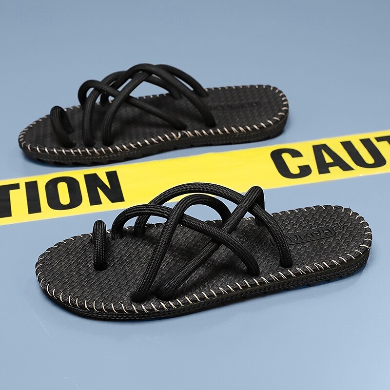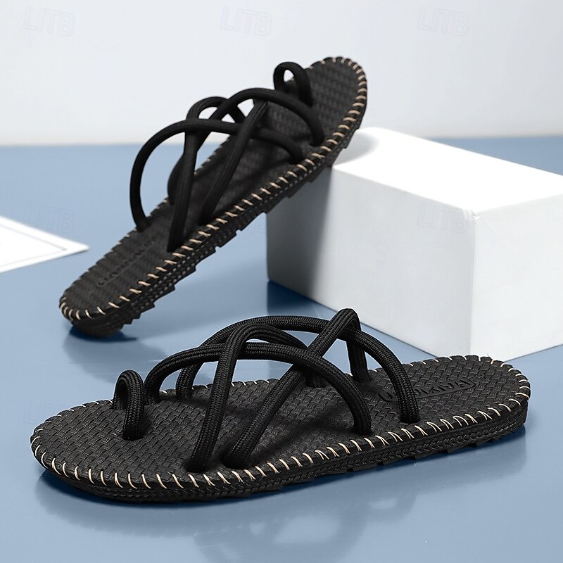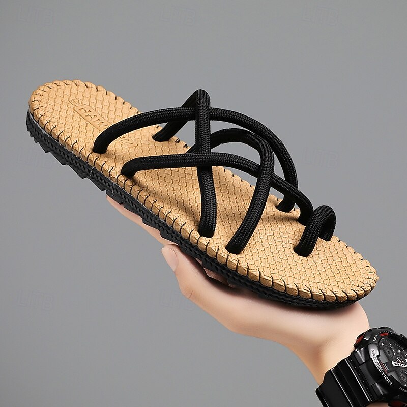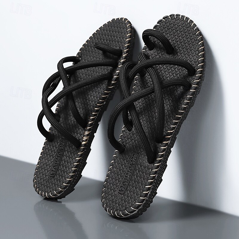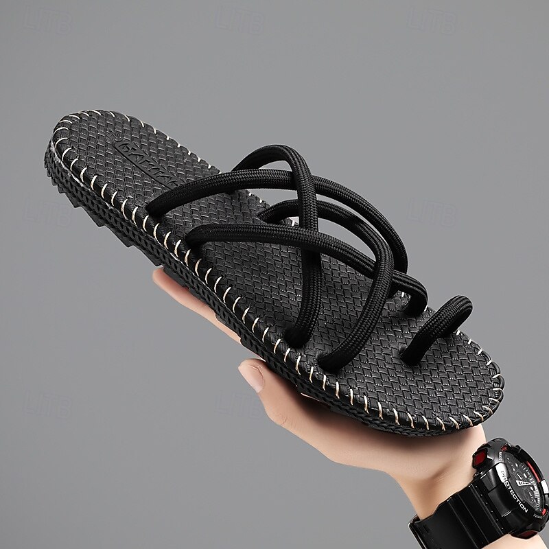 HOT ! Men's Black and White Strapped Sandals, Lightweight and Stylish with Flexible Fit, Perfect for Everyday Wear, Casual Outdoor Adventures, and Vacation Use