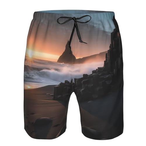 HOT ! Men's Swim Trunks Quick Dry Board Shorts Mens Bathing Suit Swimsuits Sunrise on Reynisfjara Beach Beach Shorts with Pockets