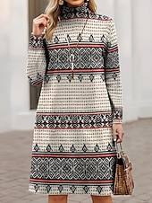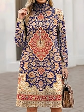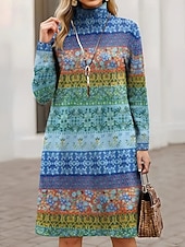 More information about Women's Sweater Dress Mini Dress Shift Dress A Line Dress Vacation Party Casual Outdoor Home Casual Loose Fit Ombre Graphic Paisley Long Sleeve Turtleneck Blue khaki Gray Spring Fall Winter