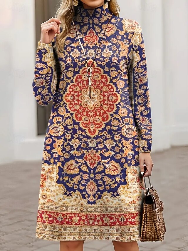 Women's Sweater Dress Mini Dress Shift Dress A Line Dress Vacation Party Casual Outdoor Home Casual Loose Fit Ombre Graphic Paisley Long Sleeve Turtleneck Blue khaki Gray Spring Fall Winter 1