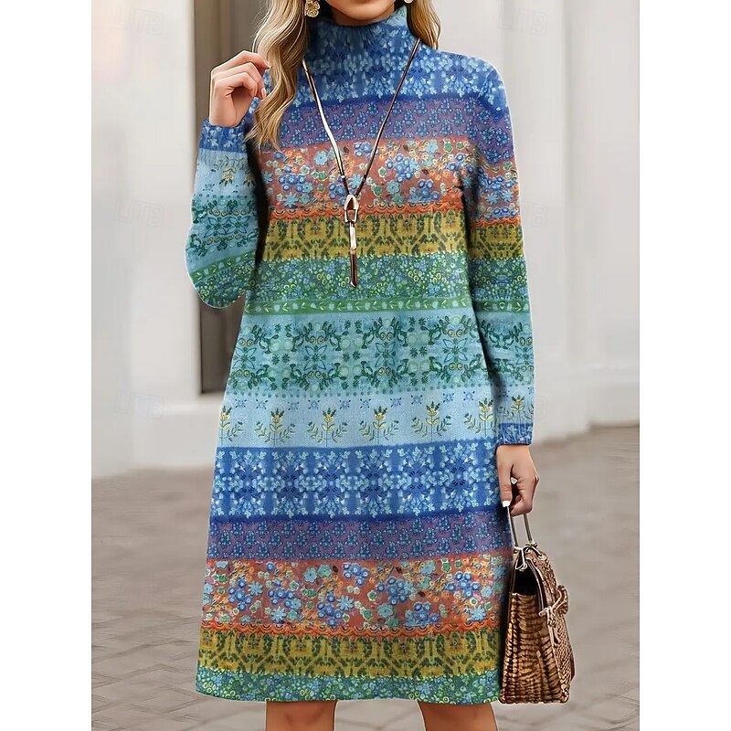 Women's Sweater Dress Mini Dress Shift Dress A Line Dress Vacation Party Casual Outdoor Home Casual Loose Fit Ombre Graphic Paisley Long Sleeve Turtleneck Blue khaki Gray Spring Fall Winter 10