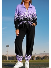 More information about Women's Sweatshirt Tracksuit 2 Piece Tracksuit Drawstring Zip Up Floral Clothing Suit Fall Purple Vocation Outdoor Travel Lightweight Fashion Long Sleeve Sport Activewear Stretchy Regular Fit