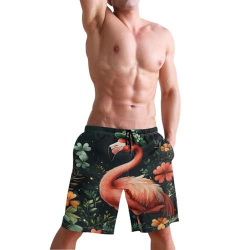 Men’s Swim Trunks Pink Flamingo Green Hat Beach Board Shorts Swimming Short Pants Running Sports Surffing Shorts 5
