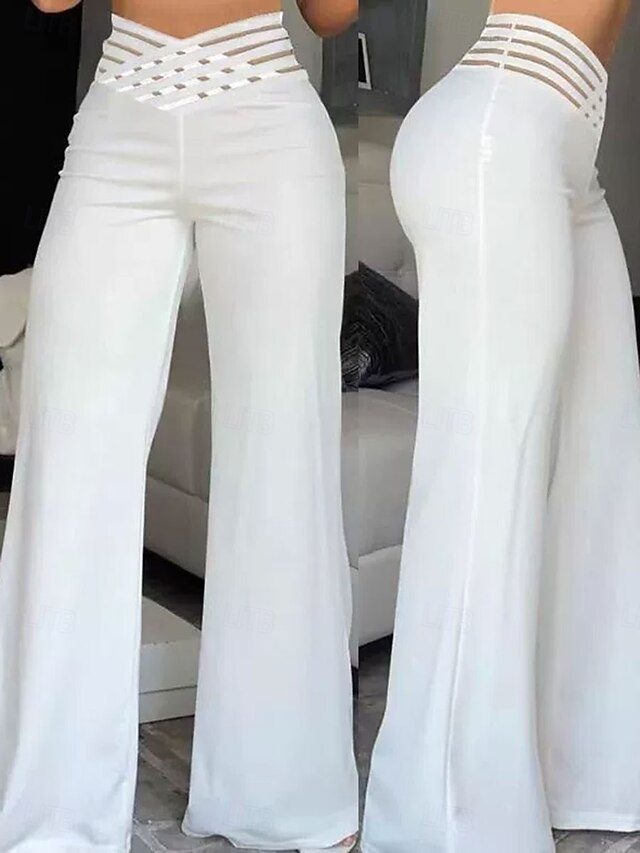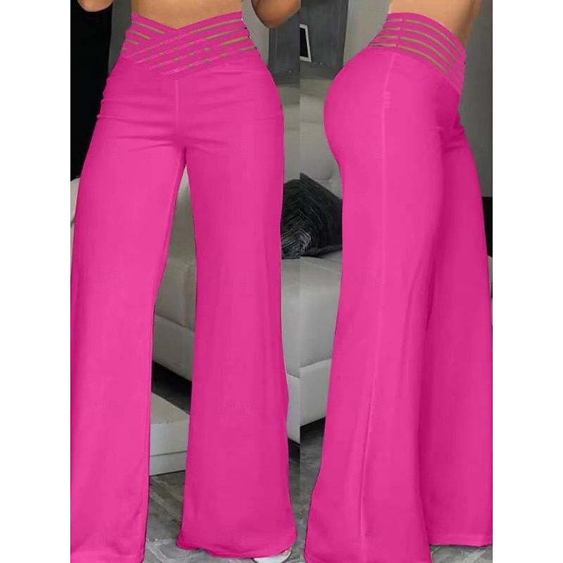 More information about Women's Wide Leg Chinos Baggy Pants Fashion Streetwear Full Length High Waist Plain Elastic Waistband Comfy Soft Comfortable Micro-elastic Outdoor Street Black White Blue Fuchsia Regular Fit