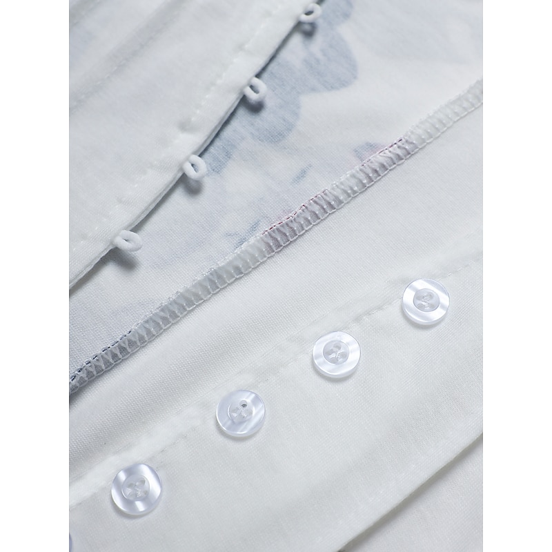 Highlights [Fabric] : Crafted from a breathable polyester blend, this maxi dress offers a lightweight feel that's perfect for warm weather. The fabric is micro-elastic, ensuring a comfortable fit that moves with you throughout the day. [Silhouette] : Featuring a flattering A-line silhouette, this dress provides a relaxed fit that drapes beautifully, complementing a variety of body types. Its maxi length adds an element of elegance, making it suitable for both casual and slightly dressier occasions. [Design Highlights] : The dress showcases a sophisticated V-neckline adorned with contrast lace that echoes the intricate lace detailing on the long sleeves. Additional design elements include ruched accents and buttons, which add depth and interest to the overall look. The vibrant floral print in pure color contrasts on a clean background enhances the bohemian charm of the dress. [Occasions] : Ideal for a range of settings, including casual daily wear, vacations, and outdoor gatherings. Whether you're exploring a new destination or enjoying a leisurely day out, this dress offers style and comfort. [Size Range] : Available in a generous size range from S to 5XL, ensuring that there’s a fit for everyone seeking a chic, relaxed look.