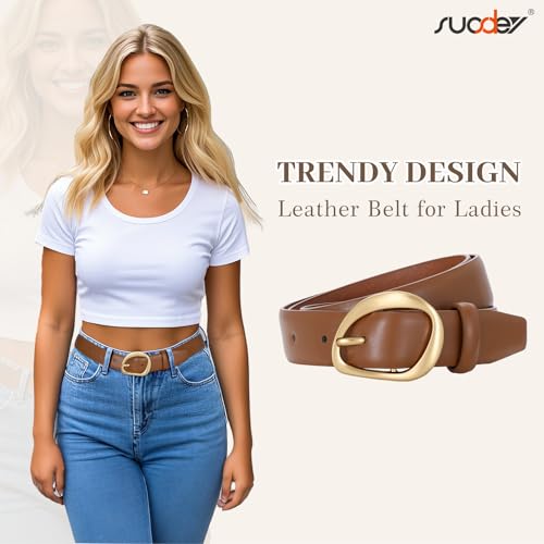 SUOSDEY Women Leather Belt for Jeans Pants, Fashion Dress Waist Belt with Gold Buckle 5