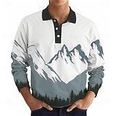 More information about Men's Mountain Polo Shirts Golf Shirt Long Sleeve Polo Shirts Collared Shirts Casual Street Dailywear Holiday Buttons 3D Print Spring Fall Winter White
